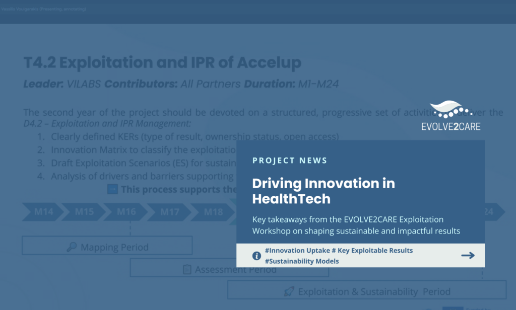 Funded by the European Union, EVOLVE2CARE focuses on HealthTech experimentation practice to standardize and enhance the collaboration between Living Labs and innovators in the context of the Transitional Care sector. The project will provide innovators with access to services for testing and validating research and products.
