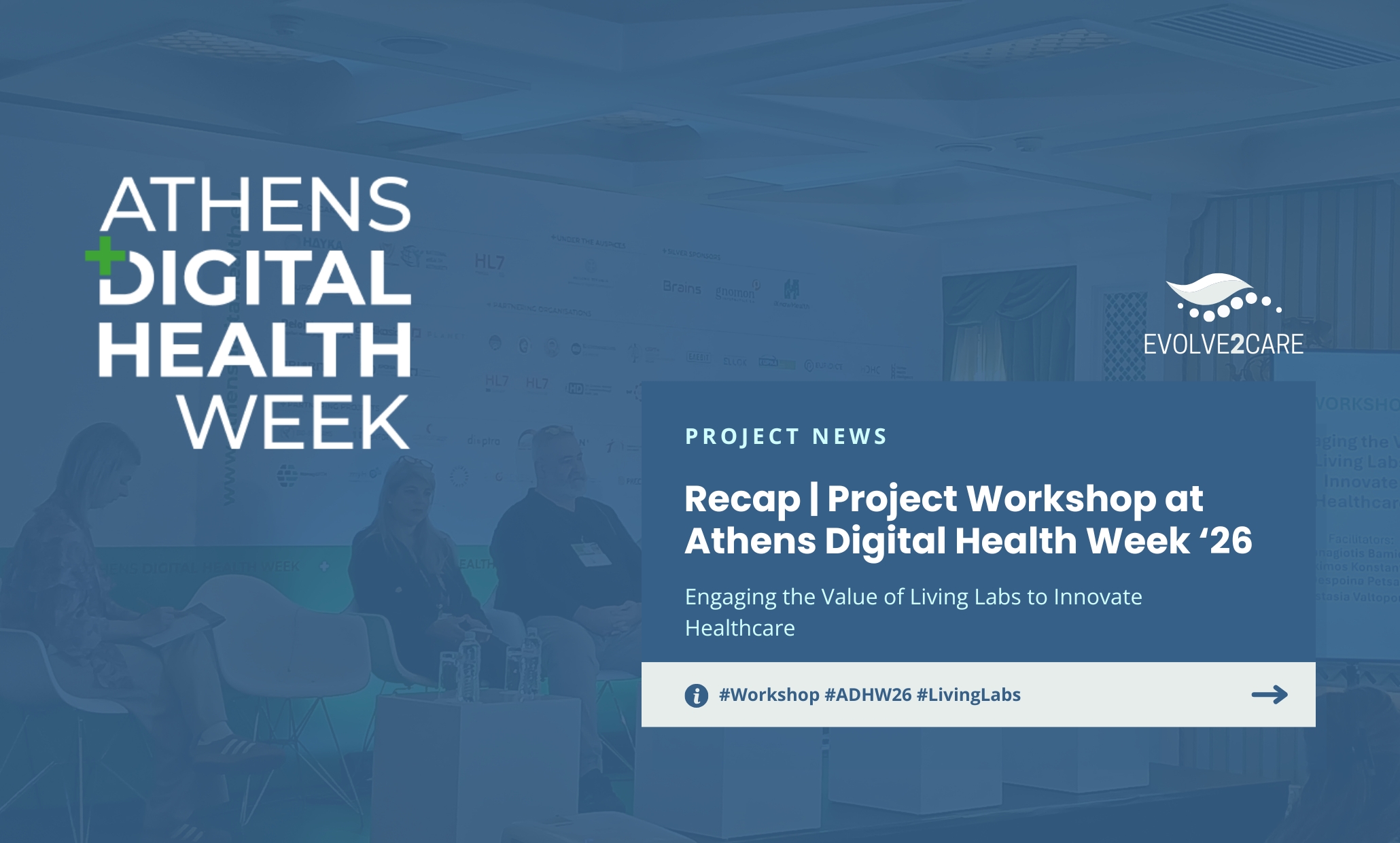 Organised by the EVOLVE2CARE project in the context of Athens Digital Health Week 2026, the workshop “Engaging the Value of Living Labs to Innovate Healthcare” took place on 18 February and was chaired by Despoina Petsani, Project Mission Coordinator (AUTH). The session convened innovators, researchers, and ecosystem actors to examine a pressing question in HealthTech: how can promising digital solutions successfully transition from pilot testing to routine clinical practice?