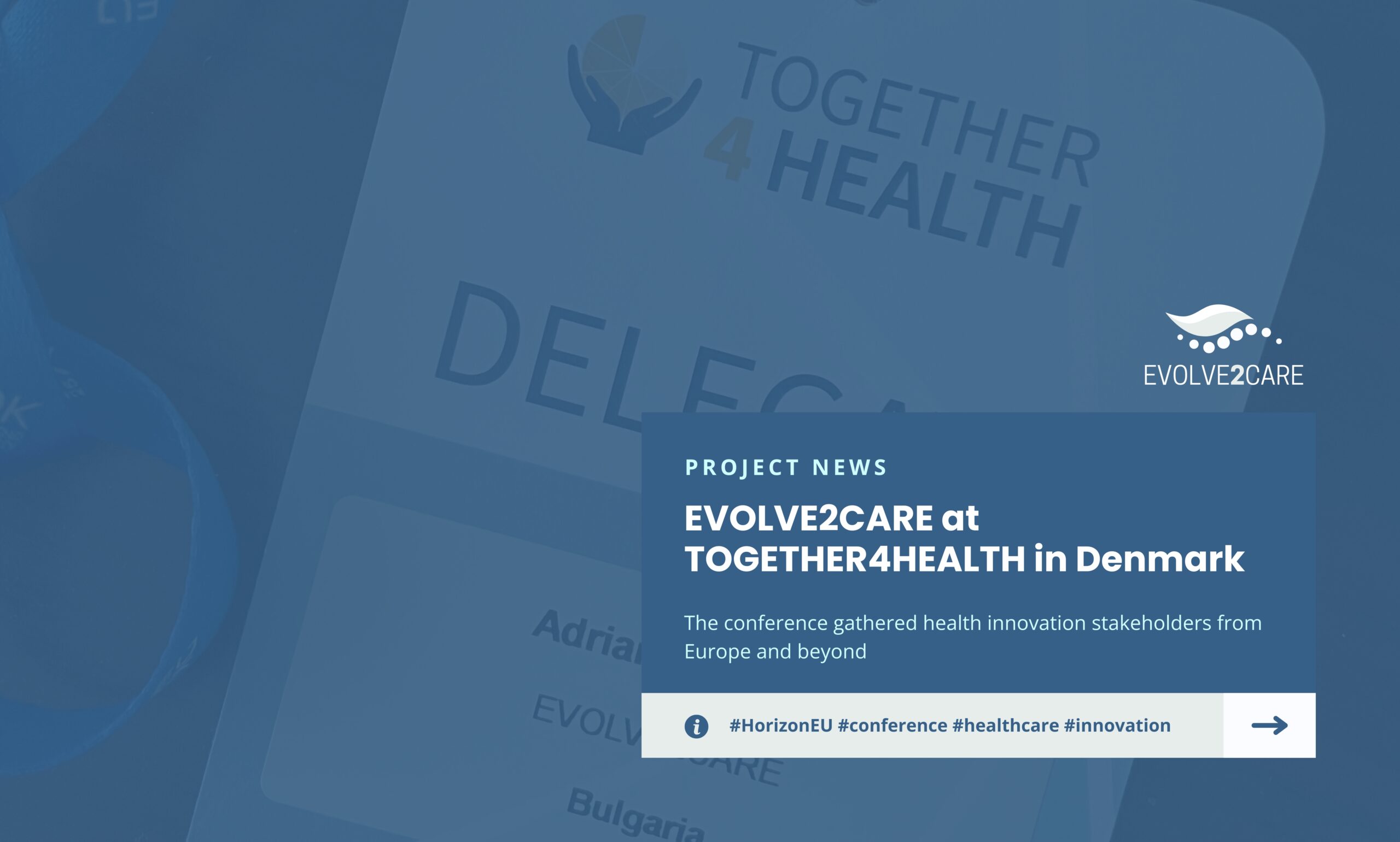 From 16–18 September 2025, EVOLVE2CARE was proudly represented at TOGETHER4HEALTH 2025, a high-impact European event held in Denmark, dedicated to transforming and integrating healthcare systems across sectors. Hosted by the North Denmark Region in partnership with Aalborg University Hospital, the conference brought together health innovation stakeholders from across Europe and beyond to exchange knowledge, foster dialogue, and co-create solutions for a more connected and patient-centric healthcare future.